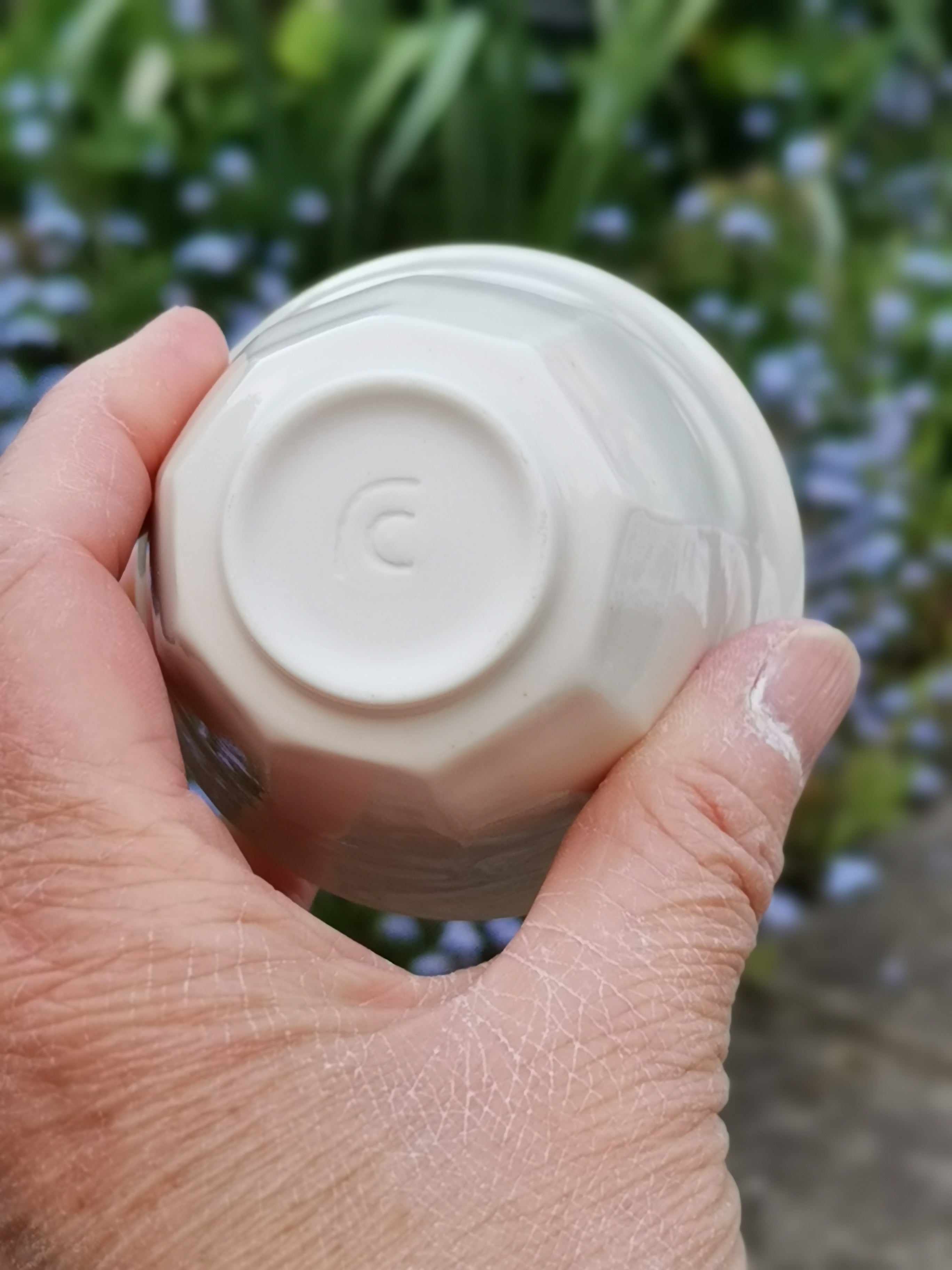 Hand Thrown and carved porcelain espresso cup.. Also perfect for sauces and dips W70mm x H60mm Dishwasher and microwave safe
